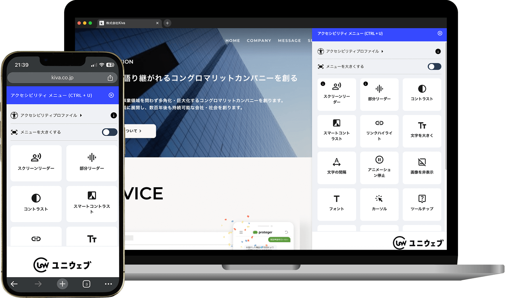 「ユニウェブ」であれば、すべてのウェブサイトにコード一行を追加するだけで、導入当日にウェブアクセシビリティ機能を提供することができます。