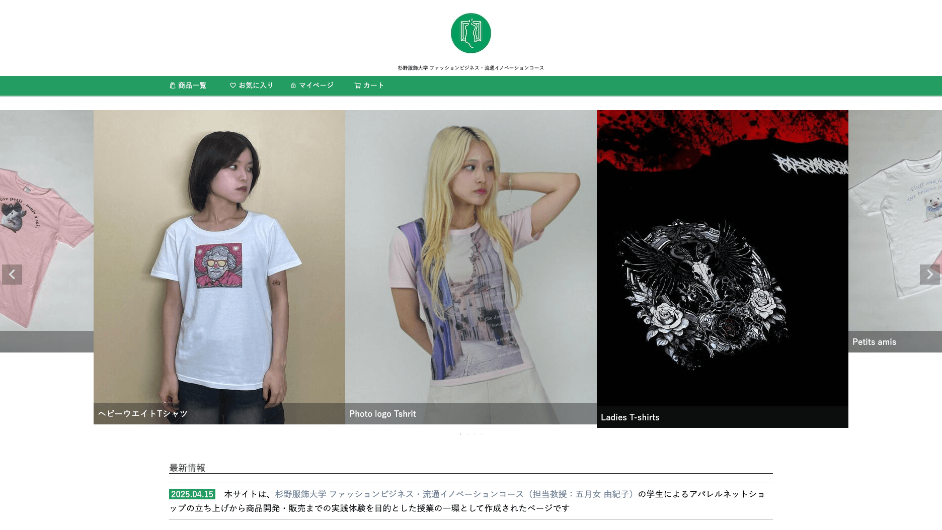 杉野服飾大学ファッションビジネス・流通イノベーションコースは、商品企画から消費者の手元に届けるまでの一連のプロセスを経験できる授業を行っており、フューチャーショップは学生によるECサイト構築・商品ページ作成などを支援しています。